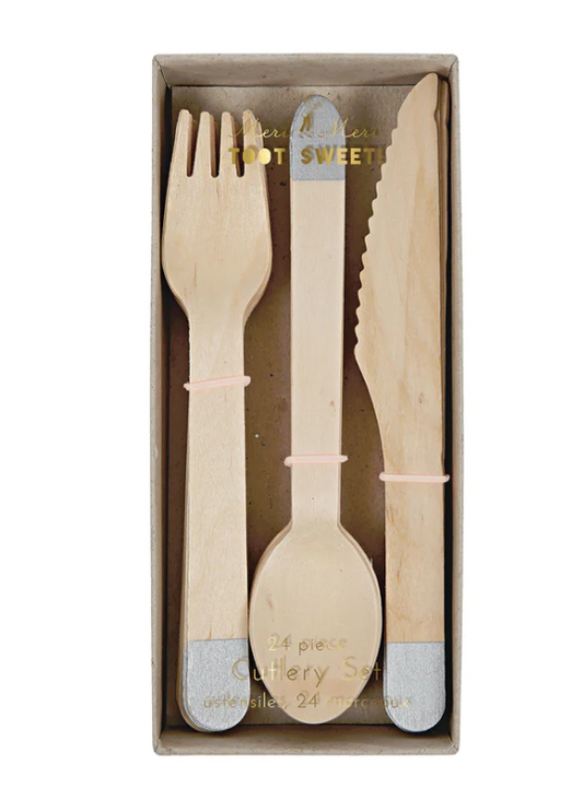 Silver Wooden Cutlery Set